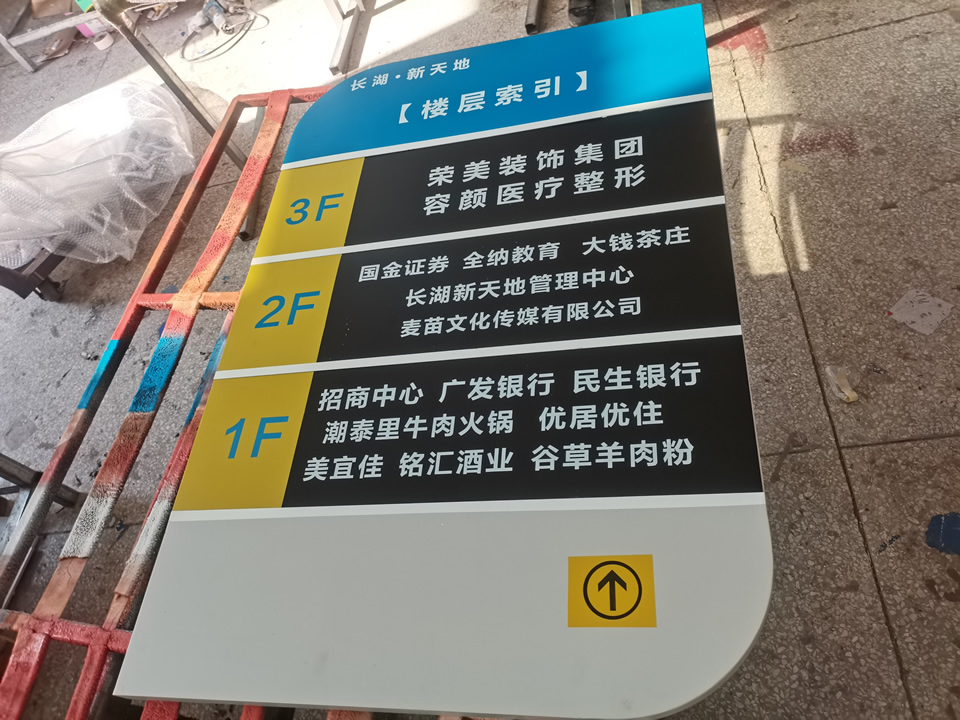 3、指示導(dǎo)視標(biāo)識(shí):定位導(dǎo)向是所有標(biāo)識(shí)系統(tǒng)基本功能?,F(xiàn)代主流導(dǎo)向方式是視覺信息導(dǎo)向,多數(shù)的標(biāo)識(shí)系統(tǒng)是通過總平面圖、多項(xiàng)指示牌、吊牌來表示建筑或環(huán)境位置關(guān)系的設(shè)計(jì),讓人們在能夠把握整體空間的前提下,有選擇的利用,引導(dǎo)人們到達(dá)目的地。導(dǎo)向定位標(biāo)識(shí)需要與建筑裝飾風(fēng)格相匹配,但又需要在顏色和型上起到明顯的指示作用。